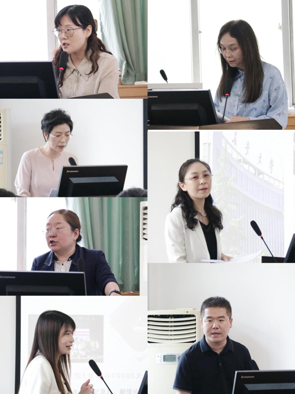 各系(室)进行专题汇报。公共管理系系主任常莉、法学系系主任刘萍、新闻传播系系主任崔慎之、中文系系主任陈熙熙、广告学系系主任夏艳、广播影视系系主任侯婧分别从专业、课程与未来发展思路,坚持立德树人、从源头提升人才培养质量,深化科教融合、产教融汇的理念和实践以及创新创业教育、职业规划与就业指导的实例与发展思路、本专业人才培养的思想和闸释等方面对各系近年来人才培养以及未来发展进行了汇报与展望;员工工作办公室主任王飞围绕“新文科人才培养”的主题,从思想政治教育赋能新时代文科人才培养和凝聚合力推动学风建设赋能员工全面发展两个方面进行了工作汇报。