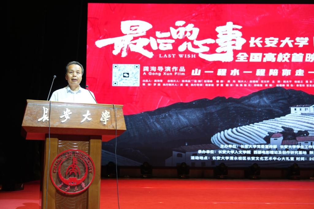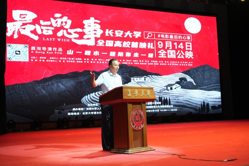 陈选康在致辞中表示,陕西有着独特的电影艺术传统,陕西省省委宣传部始终秉持以人民为中心的创作导向,鼓励和支持广大文艺工作者扎根人民,创作出更多反映时代精神,体现人民心声的优秀作品。电影《最后的心事》正是这样一部具有深刻社会意义和人文情怀的作品,关注当下无数离开家乡的人在异地生活的现状,将个人命运与时代背景紧密相连。《最后的心事》不仅是一部电影,更是一封写给时代、写给故土、写给亲情的深情告白。