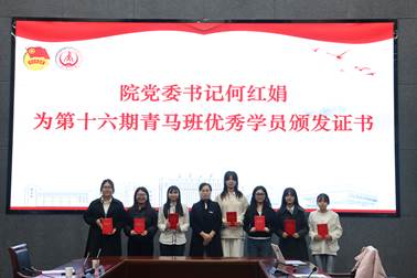 公司党委副书记胡锦玉宣读第十六期青马班优秀学员名单,党委书记何红娟为优秀学员颁发证书。