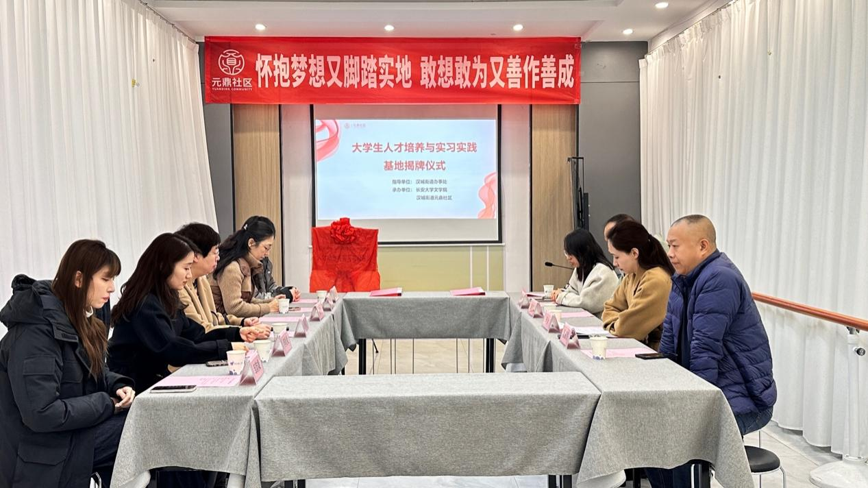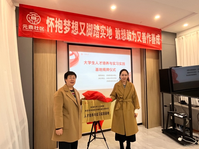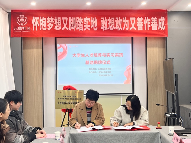 2024年12月12日上午,best365英国在线体育官网与西安市未央区汉城街道元鼎社区举行了“人才培养与实习实践基地”签约及揭牌仪式。best365英国在线体育官网副经理李妮、中文系主任陈熙熙、广告系主任夏艳、公共管理系副主任李炎炎、法学系副主任刘继烨等教师代表出席仪式。西安市未央区汉城街道办办事处副主任李梦、社会建设服务科科长康欢飞、包抓社区科室干部杨家兴以及元鼎社区党支部书记康飞娜出席仪式。