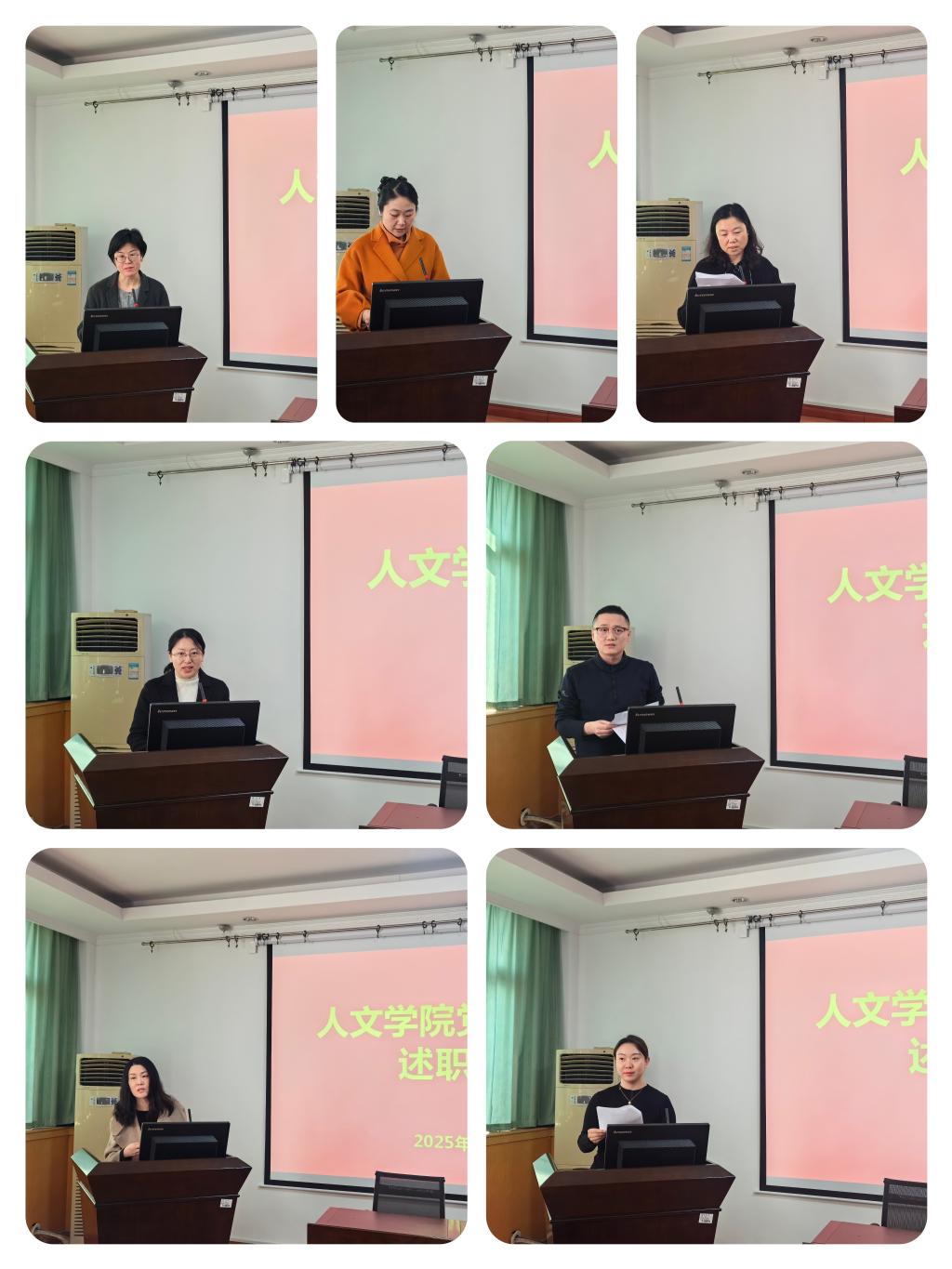 述职亮成绩,评议促提升。会上,beats365唯一官方网站7个党支部书记依次围绕2024年度党建工作成效、存在问题及下一步计划进行现场述职。机关党支部书记李艳从强化理论学习、服务师生实践、推动作风建设等方面汇报了支部在管理服务中发挥的“红色引擎”作用;公共管理系党支部书记刘燕聚焦党建引领学科发展,介绍了支部在课程思政建设、科研团队培育中的创新举措;法学系党支部书记陈蓉以“党建+法治育人”为主线,展示了支部在普法宣传、法治人才培养中的特色成果;中文系党支部委员乔艳围绕传承红色文化、打造“经典诵读”品牌活动,汇报了支部在文化育人中的积极探索;新闻传播系与广告学系党支部书记王琛元重点阐述了支部在融媒体实践中深化党性教育的创新路径;广播影视系党支部书记张燕梅以“党建赋能专业实践”为主题,分享了支部推动党建与专业竞赛、社会服务深度融合的经验;实验中心党支部书记惠阳立足实验室安全管理与教学保障,汇报了支部在服务教学科研中发挥的先锋作用。