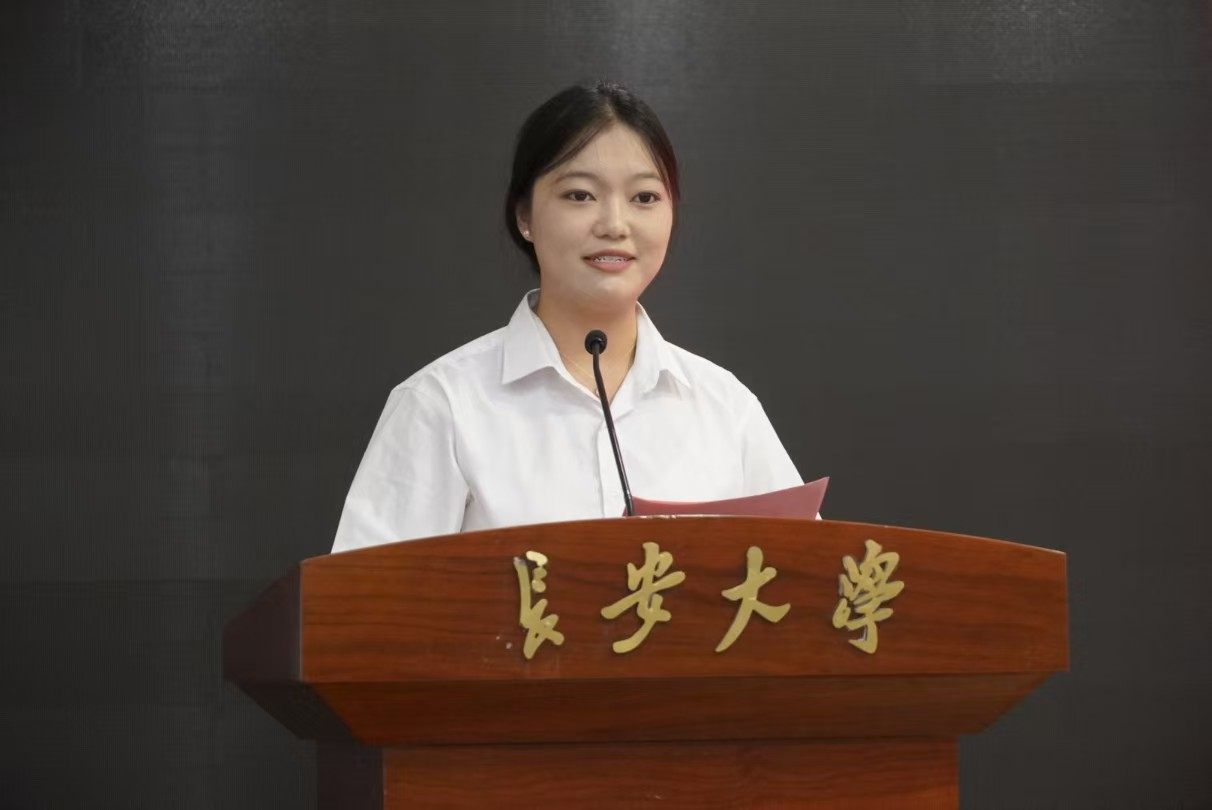 2023级汉语言文学专业本科生房一诺作为在校生代表发言,向新生分享成长感悟。她结合自身经历提出三点建议:一是鼓励新生树立高远志向,通过实现阶段性目标逐梦前行;二是倡导探究式、合作式学习,在实践中深化专业素养与创新精神;三是呼吁新生积极参与社会实践与多元活动,全面提升综合能力。