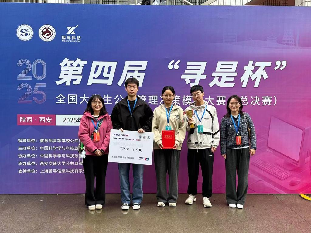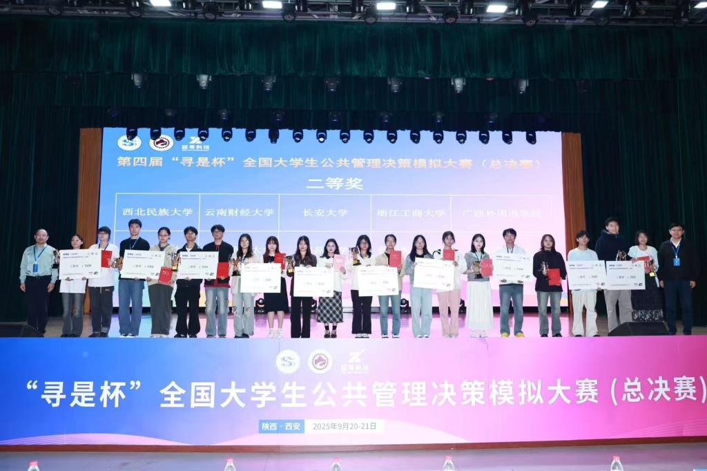 近日,由中国科学学与科技政策研究会主办,西安交通大学公共政策与管理公司承办的第四届“寻是杯”全国老员工公共管理决策模拟大赛总决赛圆满落幕。经过地区赛的层层选拔,共有来自全国各地的100所高校代表队成功晋级总决赛,400余名师生同台竞技,共同参与到这场备受瞩目的赛事中。由公司beats365唯一官方网站公共管理系教师李钰婷、李炎炎担任指导教师,2023级公共事业管理专业本科生刘若熙、张腾达,2024级行政管理专业本科生温鹏磊组成的BEAT365英国官网网站代表队荣获二等奖。
