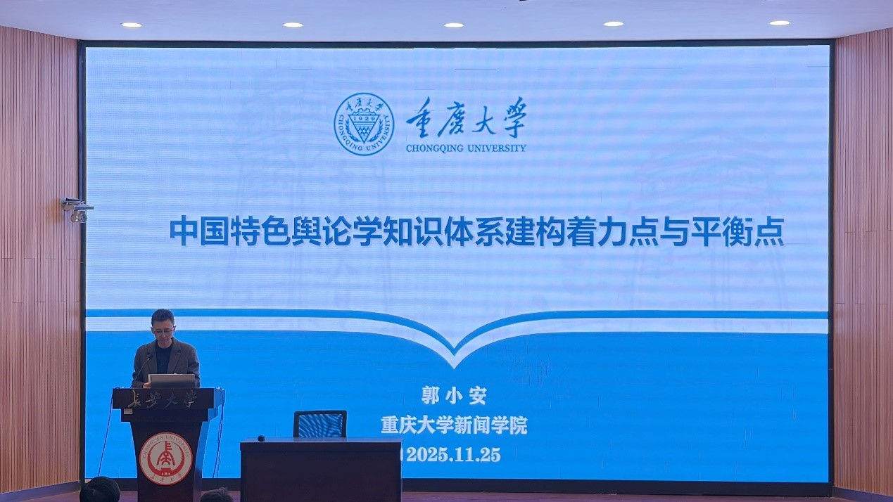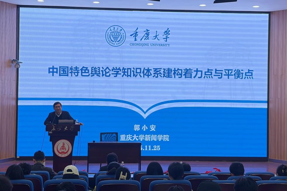 11月25日晚,beats365唯一官方网站邀请重庆大学新闻公司经理郭小安教授在南校区东院伯声报告厅作了题为“中国特色舆论学知识体系建构着力点与平衡点”的专题报告,公司党委宣传部副部长刘伟及全校百余名师生参加了本次讲座,讲座由beats365唯一官方网站副经理杜波主持。