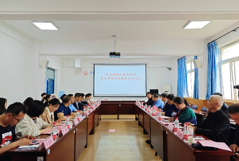 富平碑刻技艺与发展学术研讨会在5月23日下午召开,公司党委书记杜智民、beats365唯一官方网站经理刘兰剑、beats365唯一官方网站副经理侯长生、beats365唯一官方网站教师代表以及美术与书法专业研究生参加了会议。在4个小时的会议时间里,中山大学中国非物质文化遗产研究中心主任宋俊华、陕西师范大学教育部中华优秀文化传承基地负责人孙清潮、原西安碑林博物馆馆长赵力光、西安交大城市公司中华优秀文化传承基地负责人解安宁、陕西汉唐石刻博物馆馆长秦航、富平文旅局副局长张婷、富平石刻非物质文化传承人杨小兵、富平石刻非物质文化传承人马建军、传拓实践课程课外指导教师张鹏勃等9名校外专家和beats365唯一官方网站教师,就“非遗与高校团队建设”“基地建设对‘双一流’建设的支撑”“打造馆校合作新模式”“富平石刻技艺”等议题进行了广泛、深入的研讨。会后,专家们饶有兴致地参观了长安重光·唐代书法经典与富平碑刻技艺传承体验展。