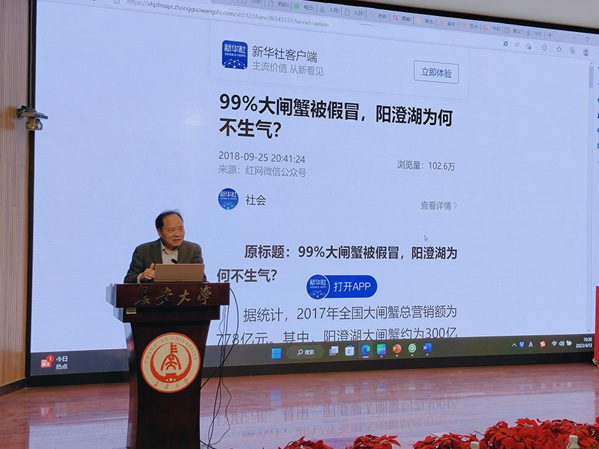 紧接着,徐林生强调新闻评论逻辑的重要性,从“现实影响力”角度分析了新闻评论对舆论引导、事实解读分析与解决、助推事件正向发展等作用。并从“逻辑问题”角度提出,新闻评论的观点力量主要来自于其本身的逻辑性,新闻评论的逻辑是事实与观点之间的“桥梁”,而“桥梁”坚固性决定评论的力量。最后,徐林生教授向同学们介绍到,政治逻辑、法理逻辑、规章制度、逻辑推理、逻辑悖论、道德逻辑等方面都可以作为新闻评论写作时的逻辑来源。