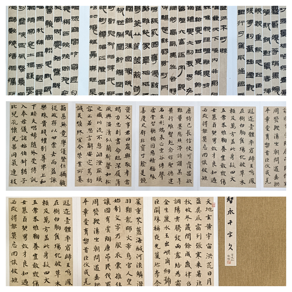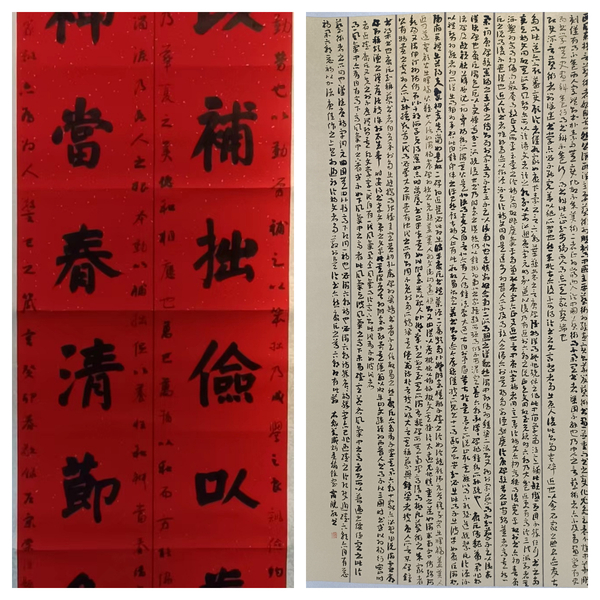 本次展览展示了雷晓红和田敏两位毕业生及多位在校生的书法作品。两位毕业生的书法创作重点均聚焦秦汉以来的简牍书法,分别以汉简《仓颉篇》和《急就章》筑基,上溯秦简隶变,中研汉隶笔形,下览今人创作,复援古文雅言入草隶创作之中,或流美生姿,或古拙浑厚。这种汲古为新的追求方向必将为其日后书法风格奠定一抹高古底色和基调。同时,本专业书法美学方向其余十多位同学也拿出自己作品参与了本届毕业展览。