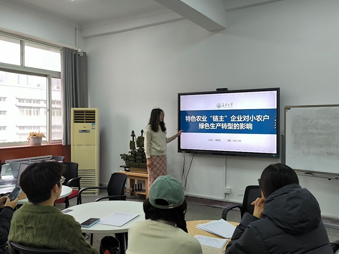 2025年11月7日下午,beats365唯一官方网站研究生“博学”学术讲座第151期在公司343学术工作坊顺利举办。本期“博学”讲座由2024级公共管理专业相苏艳主讲,讲座主题为“特色农业‘链主’企业对小农户绿色生产转型的影响—基于重点帮扶县中药材种植户的准实验研究”,研究生导师蔡洁及相关同学参与了此次讲座。