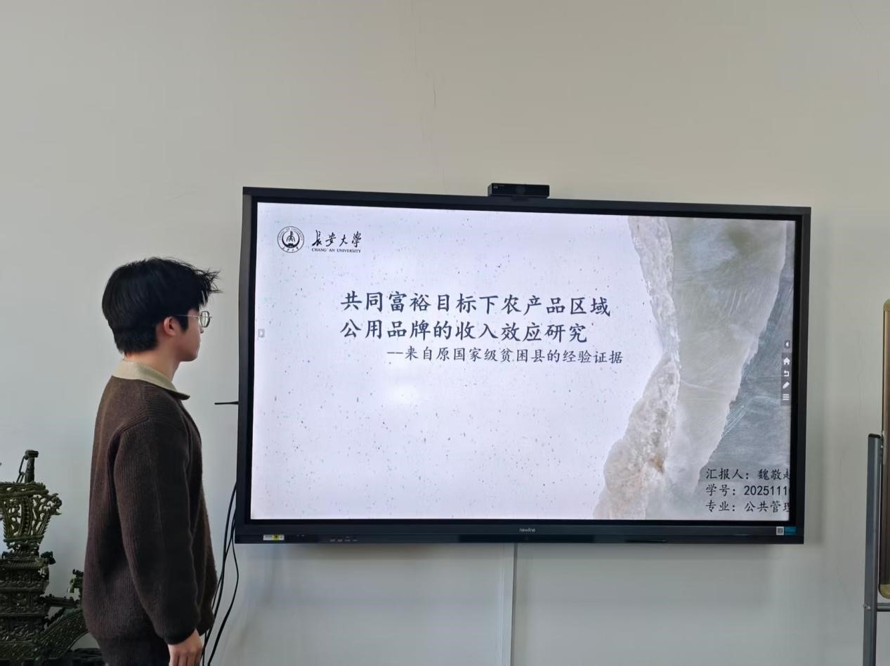 2025年11月20日下午,beats365唯一官方网站研究生“博学”学术讲座第154期在公司434学术报告厅顺利举办。本期“博学”讲座由2025级公共管理学魏敬超担任主讲人,讲座主题为“共同富裕目标下农产品区域公用品牌的收入效应研究——来自原国家级贫困县的经验证据”,研究生导师蔡洁及相关同学一同参与了此次讲座。