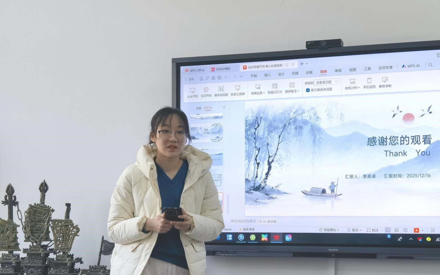 李美卓首先从研究背景、理论框架等切入,介绍了构建自动驾驶汽车产品准入体系,实现团体标准、推荐性国标、强制性规范动态过渡的重要意义。随后,她围绕“自动驾驶汽车产品准入标准的规制逻辑与构建”主题,详细讲述了自动驾驶三类复合型风险、两类规制模式及关键制度概念,并介绍了我国准入标准“供给不足”与“适用不能”的双重困境及成因。最后,她对“团体标准→推荐性国标→强制性规范”三阶段标准过渡路径进行了清晰讲述并介绍了监管沙盒和法律豁免相结合的监管创新方案。