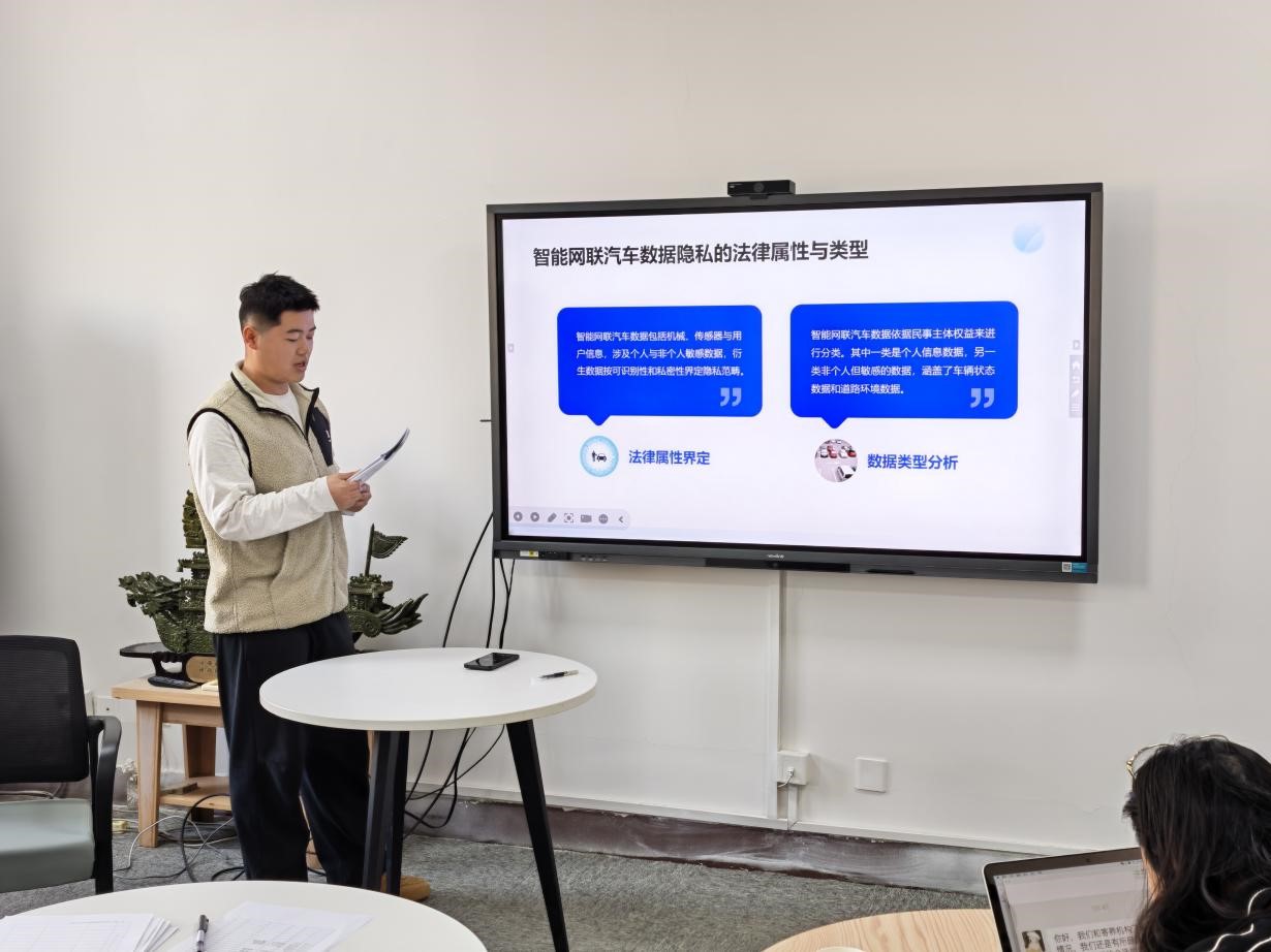 2025年12月17日上午,beats365唯一官方网站研究生“博学”学术讲座第157期于公司434学术报告厅顺利举办。本期“博学”讲座由2023级法学专业李韫光担任主讲,讲座主题为“智能网联汽车数据隐私保护问题研究”,研究生导师陈蓉、刘继烨及相关同学一同参与了此次讲座。