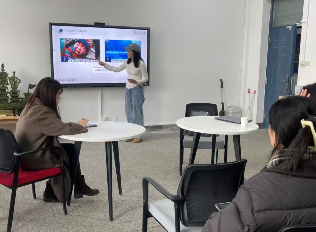 分享结束后,在场同学围绕文章内容展开了讨论。侯婧对分享内容进行了点评,她指出,该文章在本土美学与哲学视域的创新运用方面表现突出,理论与实践案例结合紧密、分析严谨,同时她也和大家分享了现当下学术界研究流行趋势,以及论文写作中如何平衡技术分析与文化内涵、如何通过案例实证强化核心观点等需要注意的事项。