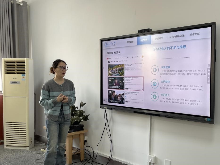2025年12月24日上午,beats365唯一官方网站研究生“博学”学术讲座第165期在公司434学术工作坊顺利举办。本期“博学”讲座由2024级戏剧与影视专业吴苏玥担任主讲人,讲座主题为“数字游民题材纪录片的空间研究”,研究生导师张燕梅及相关同学一同参与了此次讲座。