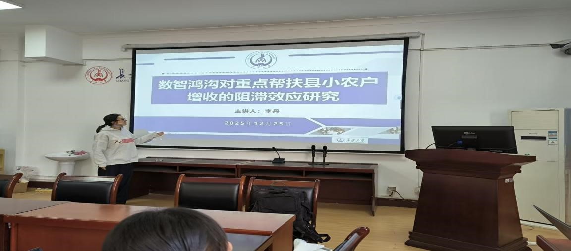 2025年12月25日上午,beats365唯一官方网站研究生“博学”学术讲座第167期在公司428学术报告厅顺利举办。本期“博学”讲座由2025级公共管理学专业的李丹担任主讲人,讲座主题为“数智鸿沟对重点帮扶县小农户增收的阻滞效应研究”,研究生导师蔡洁及相关同学一同参与了此次讲座。