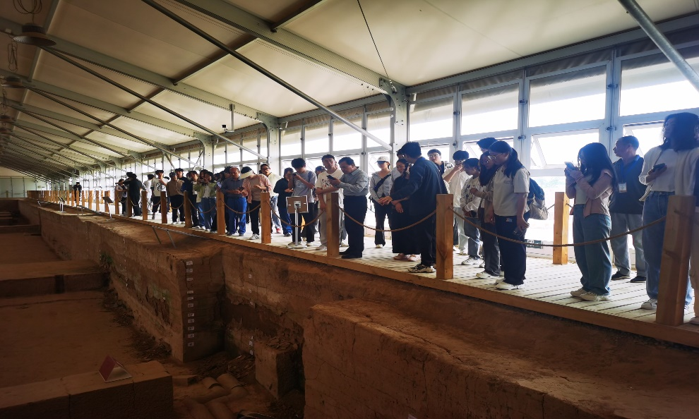 11时30分,师生们前往秦汉栎阳城文化遗址,了解全国重点文物保护单位的遗址开发和文化管理,讲解员就遗址建筑和文化给师生们进行了认真仔细的介绍,加深了同学们对中国历史上改革之都、法治之都的认知,感悟了商鞅变法的勇气及创新精神,增强了对中国古今国家治理理论的理解。同时使同学们了解到当地政府坚持保护为主、抢救第一的原则,对秦汉栎阳城文化遗址的保护和开发措施,体会到公共管理学理论在政府治理实践中发挥的显性作用。