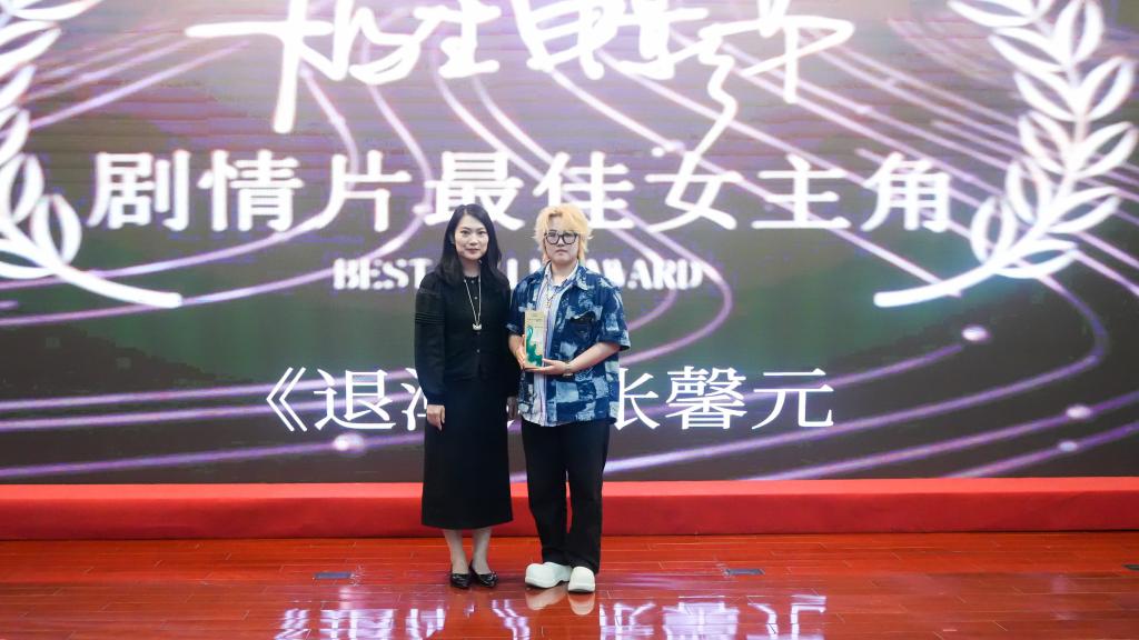 校团委书记丁芝娟颁发剧情片最佳女主角奖