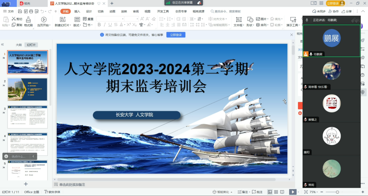 6月27日下午,公司召开2023-2024学年第二学期期末监考培训会。会议通过线上会议方式举行,副经理李妮、各系主任、考试周监考老师、公司教务员参加此次会议。会议由副经理李妮主持。