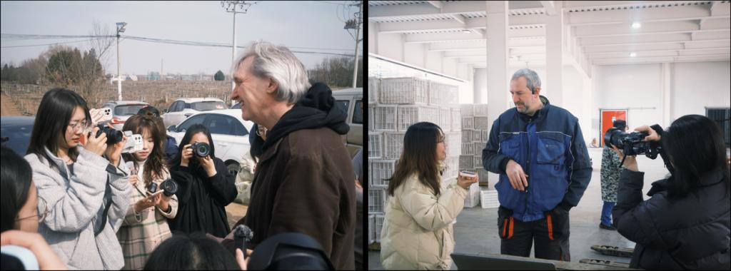 采访途中,适逢法国技术专家组前来维护自动化分拣设备,员工们随机采访了迈夫中国副总经理布茨和迈夫诺达烟台工厂的自动化经理塞巴斯蒂安,了解周至猕猴桃产业技术升级的具体情况。