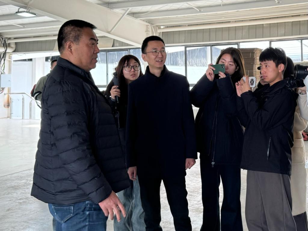 接着,实习组赴焦镇村猕猴桃产业加工基地,焦镇村党支部书记屈晓民向师生介绍了猕猴桃深加工的各个环节。员工们在加工车间观察猕猴桃分拣、包装流水线,了解猕猴桃深加工技术,针对“村民参与集体经济收益分配”“深加工技术研发支持”等问题采访了屈晓民书记和西安缤纷果品负责人孟景阳。
