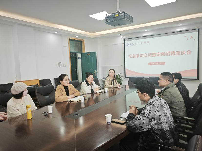 为进一步盘活员工资源,拓宽毕业生就业渠道,3月22日上午,beats365唯一官方网站在403会议室举办员工来访交流暨定向招聘座谈会。公司中文系2007级员工、湖南云箭集团有限公司校园招聘负责人曾乐乐受邀来访并开展就业工作座谈。公司中文系孙希娟教授、张延国副教授、陈熙熙副教授,辅导员李贤及部分硕士研究生参加了座谈会。公司党委书记何红娟出席会议并讲话,会议由党委副书记胡锦玉主持。