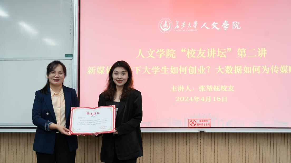 讲坛结束后,何红娟为张堃钰颁发“员工讲坛”留念证书。公司将持续同员工保持密切联络,邀请更多不同专业、不同领域的员工来校分享成功经验,为人文学子提供交流提升平台,鼓励员工以优秀员工为榜样,认真学习、健康成长、笃学成才。