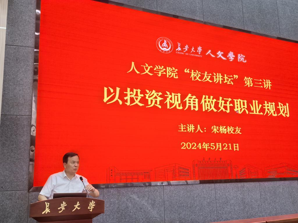 5月21日晚,beats365唯一官方网站“员工讲坛”第三讲在北校区师生服务大厅二层第二报告厅举行。本次讲坛主题为“以投资视角做好职业规划”,邀请best365英国在线体育官网2006级广告学专业本科生、2010级产业经济学硕士研究生、现陕西股权交易中心金股资产常务副总经理、陕西创意文化产业协会副秘书长、西安创新人才研究院顾问宋杨员工做主讲嘉宾,公司经理杜智民,学办老师及部分本科生参加。